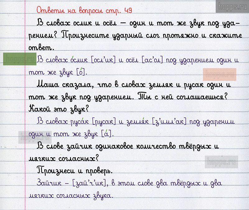 Подробные ответы к вопросам и заданиям на 49 странице учебника по русскому языку автора Н.А. Чуракова для учащихся 1 класса.