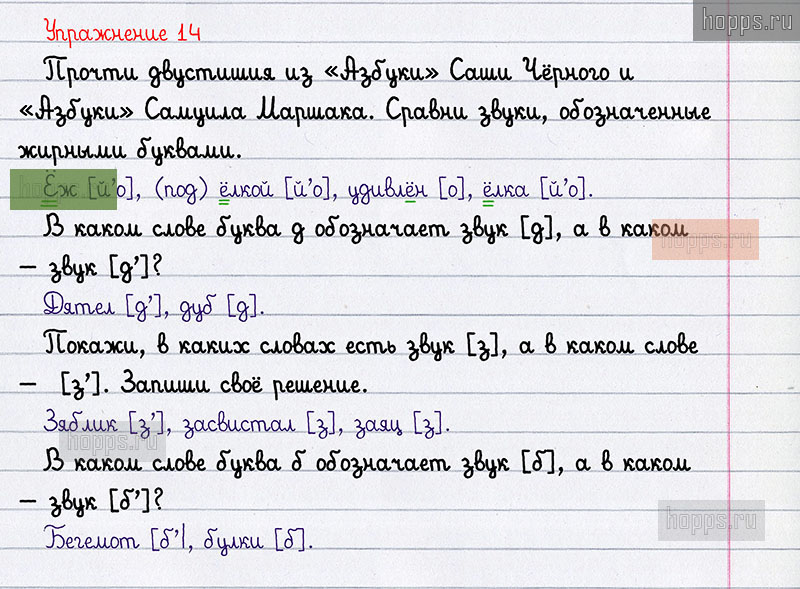 Подробные ответы к 14 упражнению учебника по русскому языку автора Н.А. Чуракова для учащихся 1 класса.