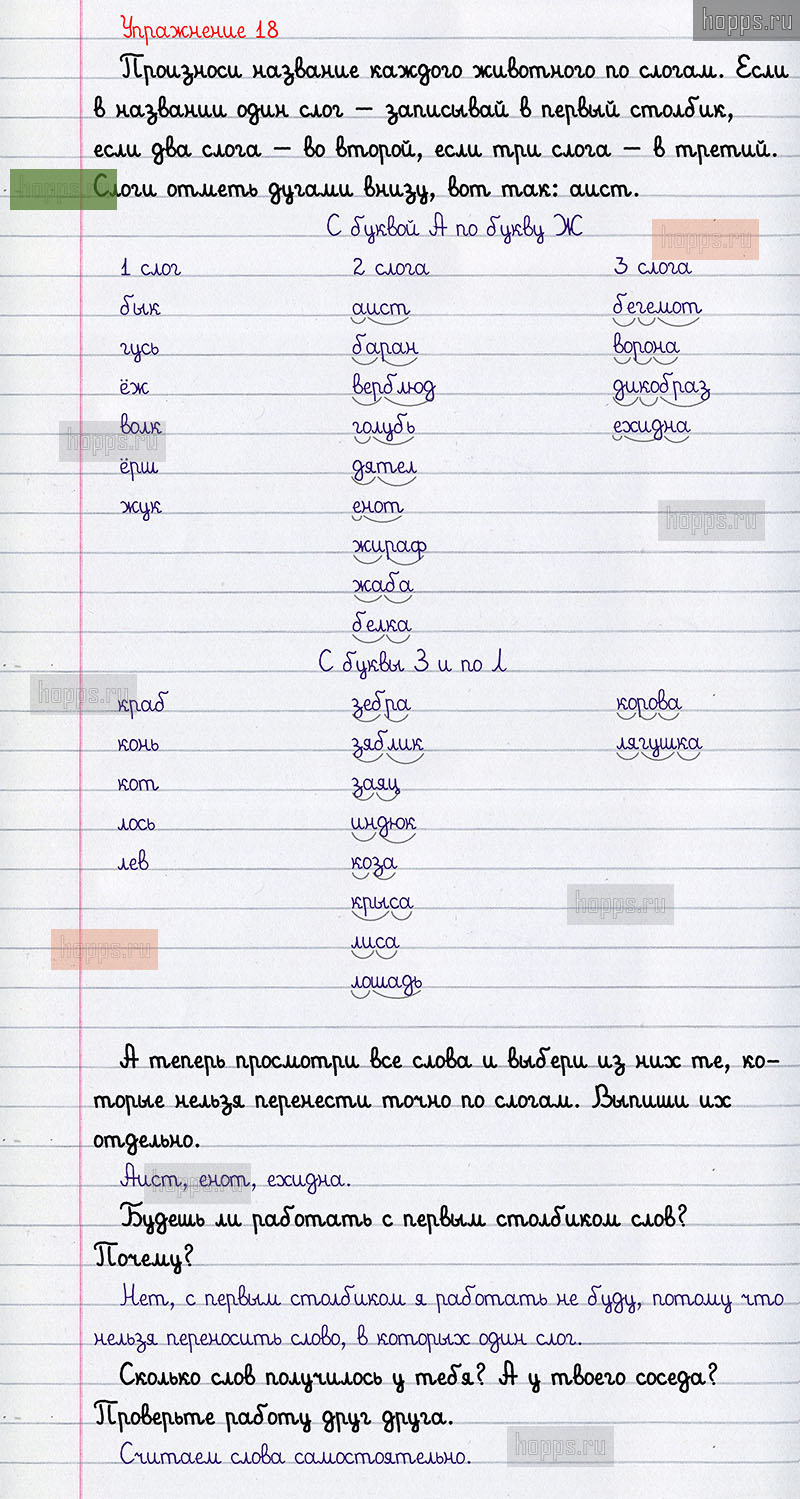 Подробные ответы к 18 упражнению учебника по русскому языку автора Н.А. Чуракова для учащихся 1 класса.