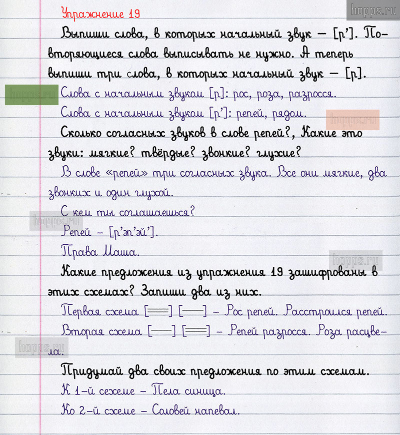 Подробные ответы к 19 упражнению учебника по русскому языку автора Н.А. Чуракова для учащихся 1 класса.