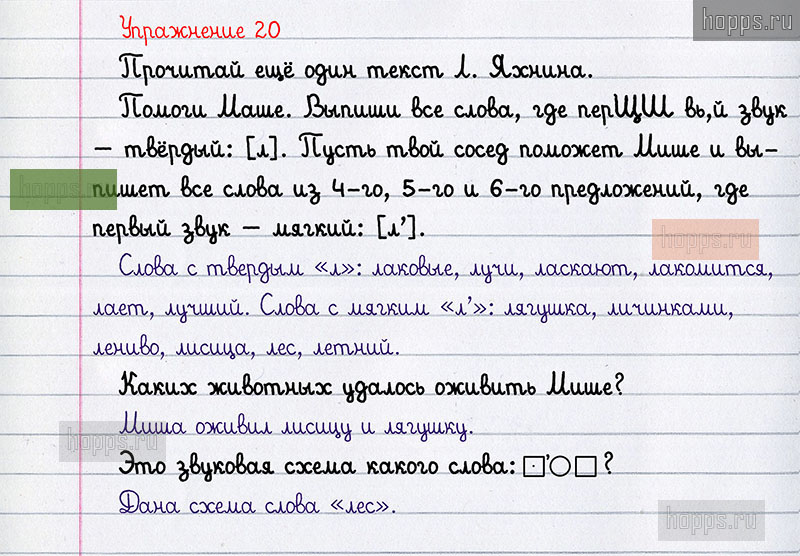 Подробные ответы к 20 упражнению учебника по русскому языку автора Н.А. Чуракова для учащихся 1 класса.