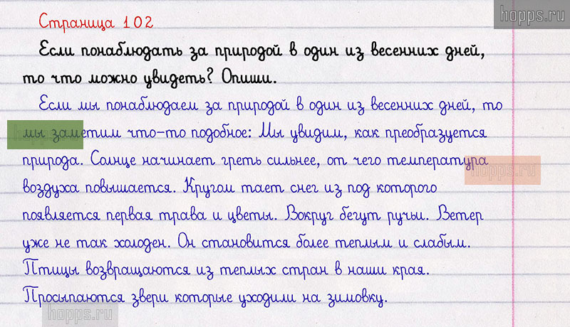 Подробные ответы к заданиям, расположенным на 102 странице 2 части азбуки авторов В.Г. Горецкий, В.А. Кирюшкин, Л.А. Виноградская для учащихся 1 класса.М. М. Пришвин. Предмайское утро.
