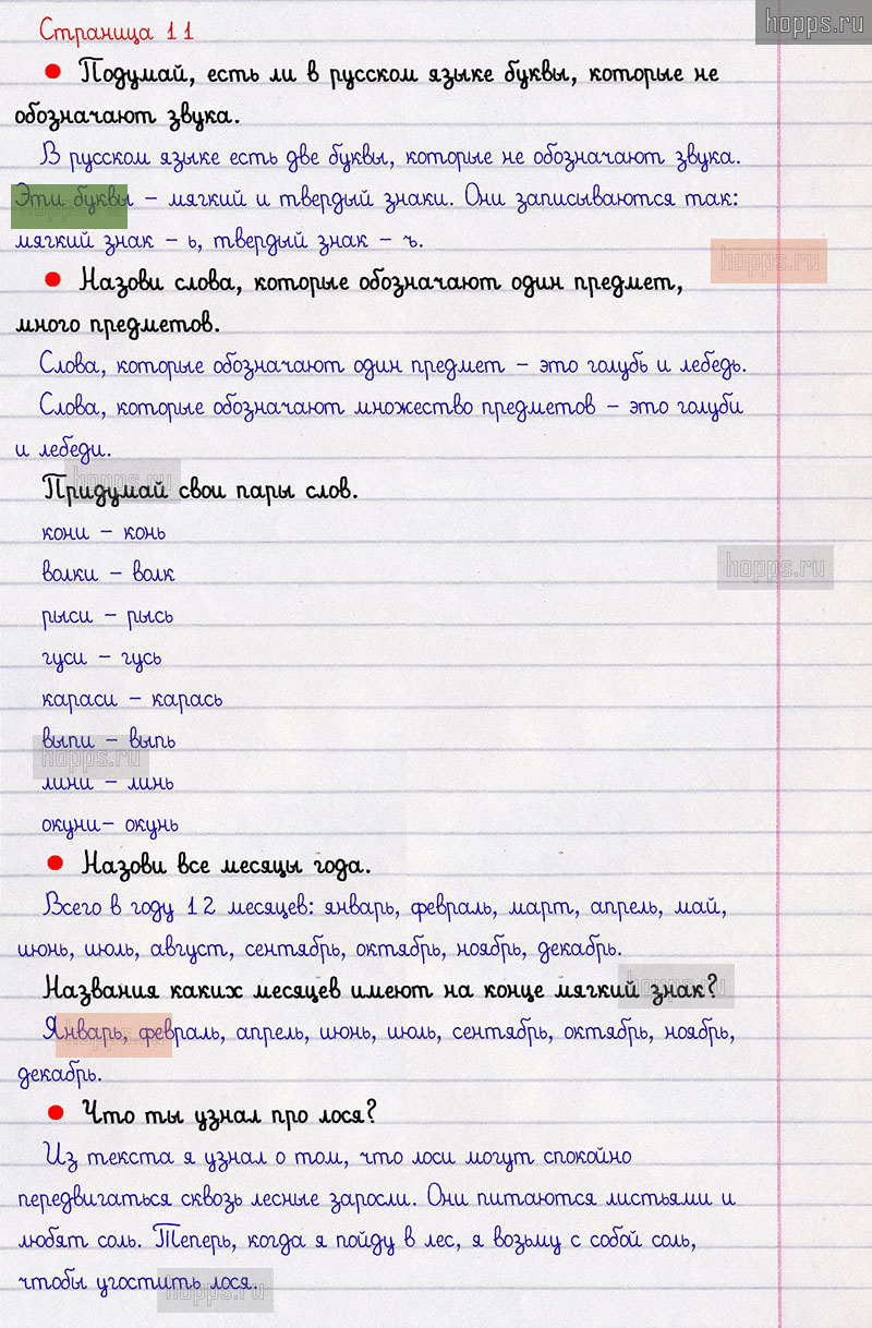 Подробные ответы к заданиям, расположенным на 11 странице 2 части азбуки авторов В.Г. Горецкий, В.А. Кирюшкин, Л.А. Виноградская для учащихся 1 класса.Буква Ь.