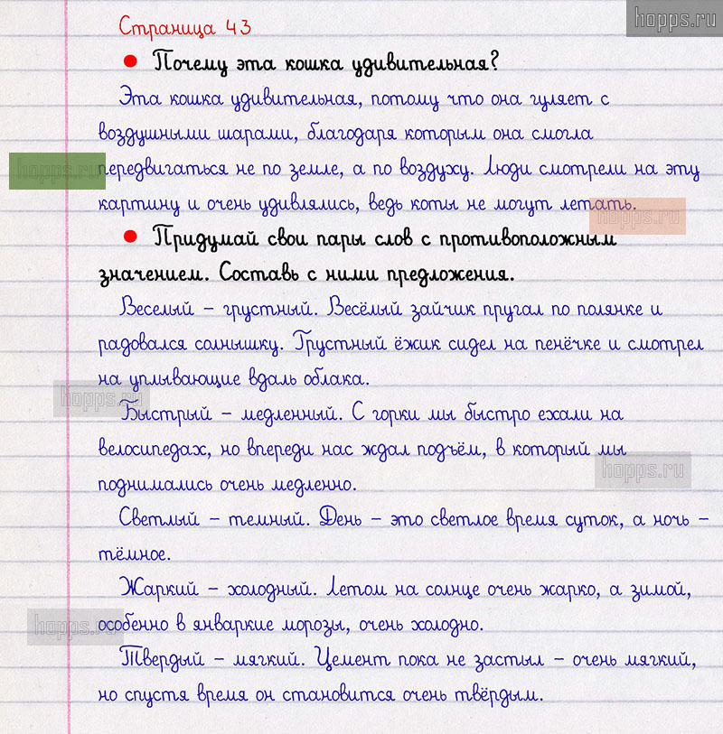 Подробные ответы к заданиям, расположенным на 43 странице 2 части азбуки авторов В.Г. Горецкий, В.А. Кирюшкин, Л.А. Виноградская для учащихся 1 класса.Удивительная кошка.