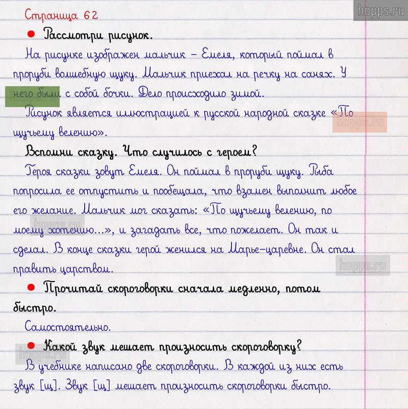 Подробные ответы к заданиям, расположенным на 62 странице 2 части азбуки авторов В.Г. Горецкий, В.А. Кирюшкин, Л.А. Виноградская для учащихся 1 класса.Русская народная сказка «По щучьему велению».