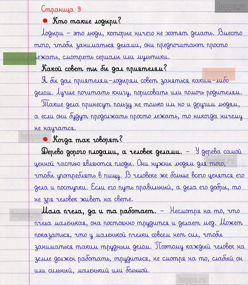 Вопросы и задания: Кто такие лодыри? Какой совет ты бы дал приятелям? Значение пословиц: дерево дорого плодами, а человек — делами; мала пчела, да и та работает.