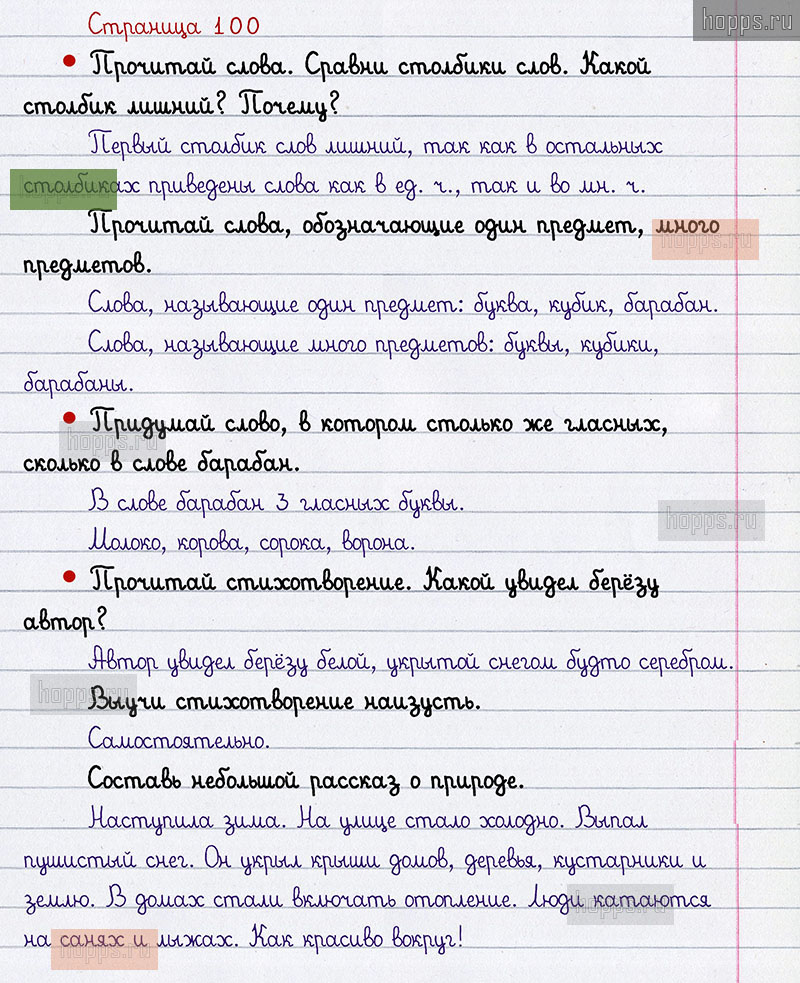 Подробные ответы к заданиям, расположенным на 100 странице 1 части азбуки авторов В.Г. Горецкий, В.А. Кирюшкин, Л.А. Виноградская для учащихся 1 класса.