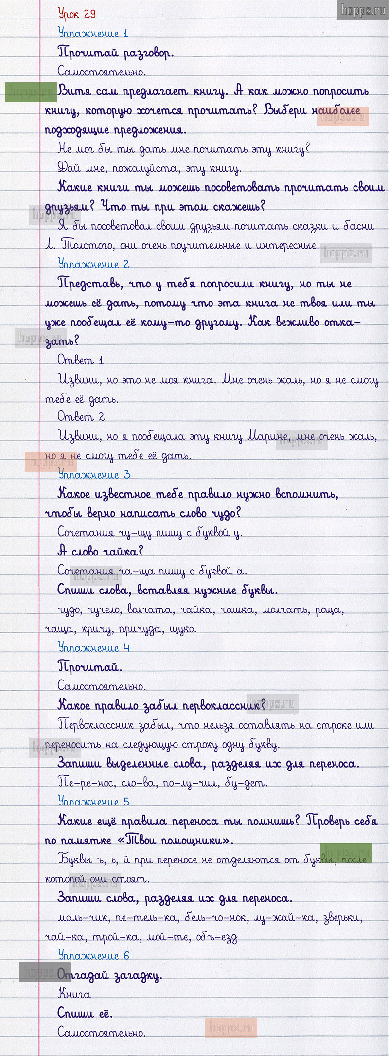 Подробные ответы к заданиям 29 урока учебника по русскому языку авторов С.В. Иванов, А.О. Евдокимова, М.И. Кузнецова, для учащихся 1 класса.