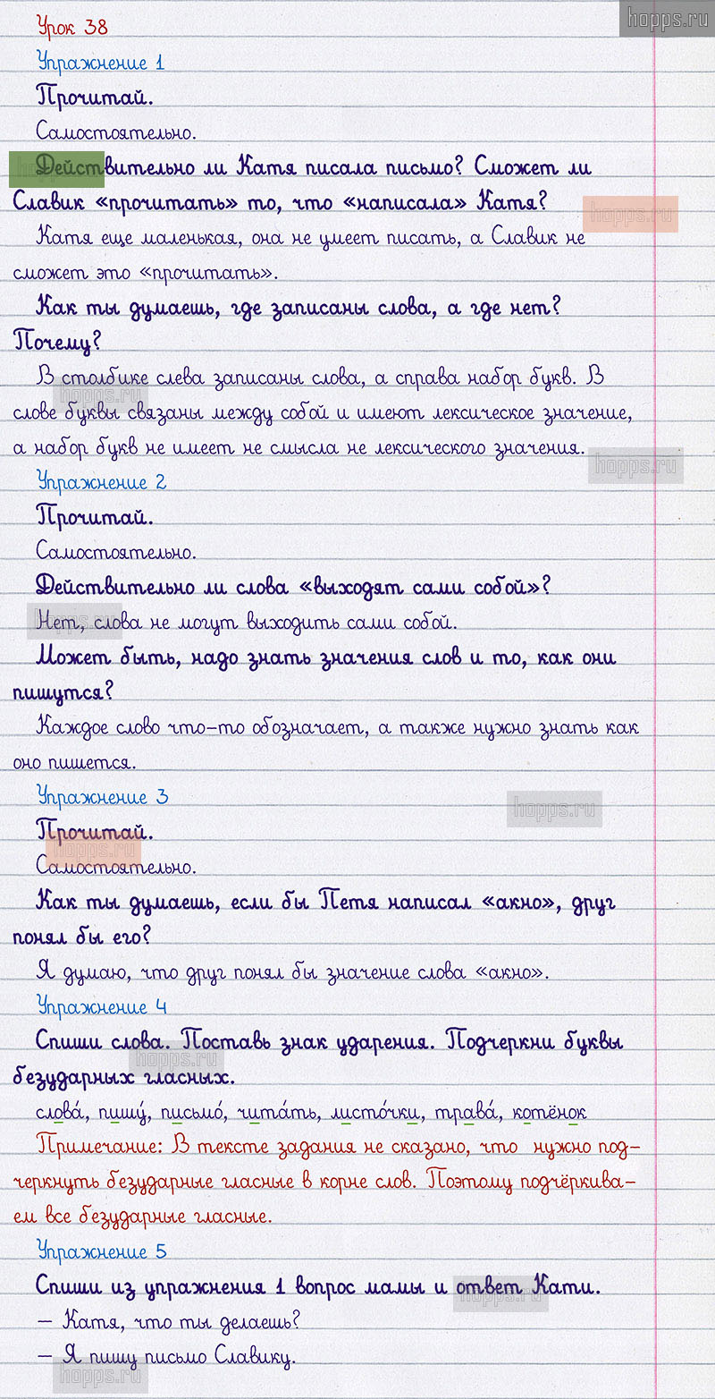 Подробные ответы к заданиям 38 урока учебника по русскому языку авторов С.В. Иванов, А.О. Евдокимова, М.И. Кузнецова, для учащихся 1 класса.