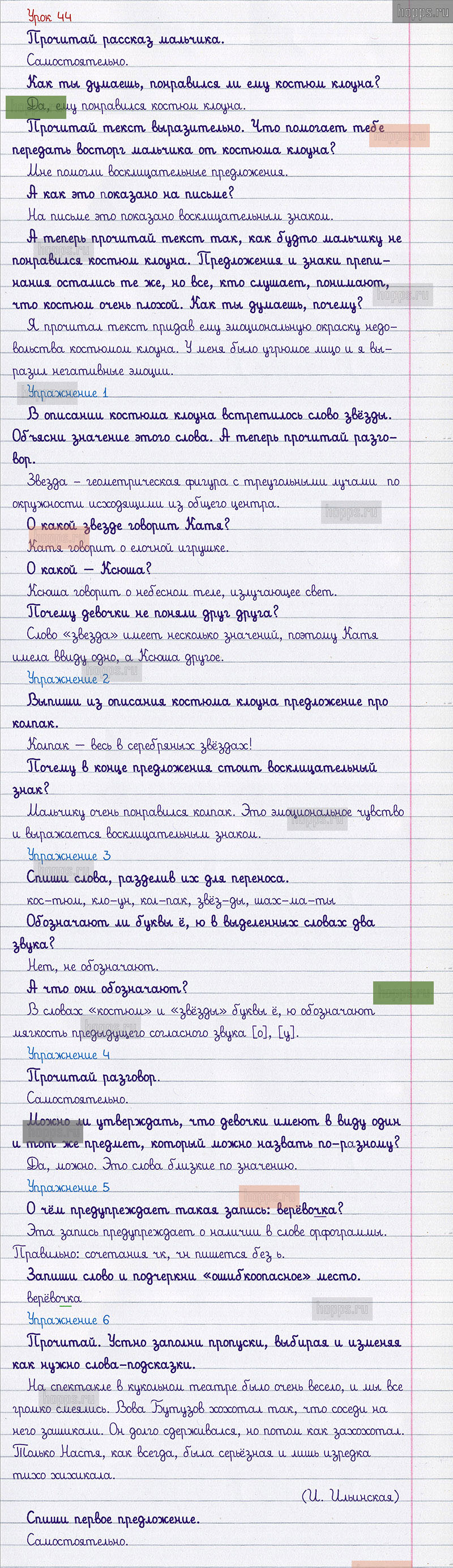 Подробные ответы к заданиям 44 урока учебника по русскому языку авторов С.В. Иванов, А.О. Евдокимова, М.И. Кузнецова, для учащихся 1 класса.
