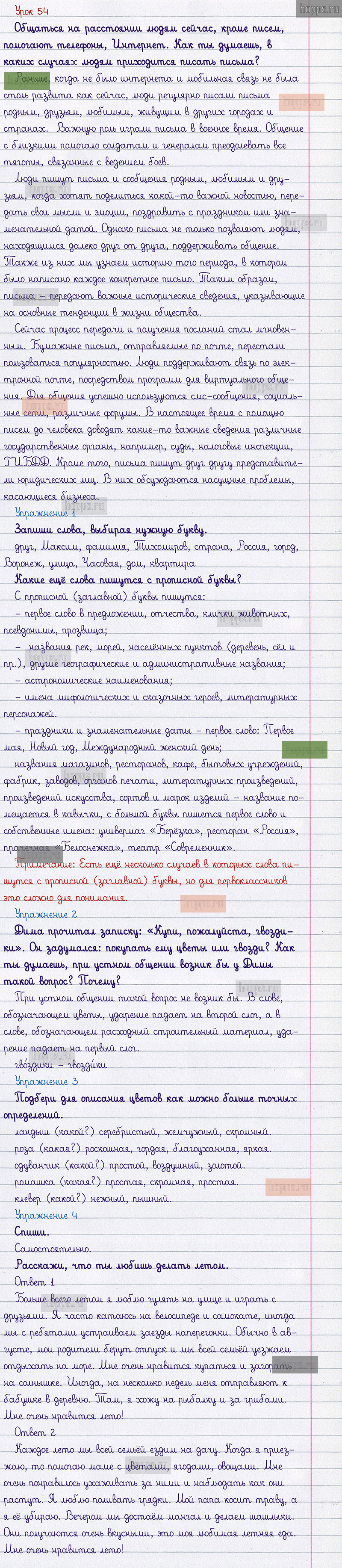 Подробные ответы к заданиям 54 урока учебника по русскому языку авторов С.В. Иванов, А.О. Евдокимова, М.И. Кузнецова, для учащихся 1 класса.