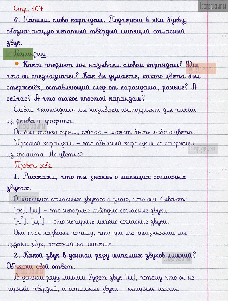 Подробные ответы к вопросам и заданиям, расположенным на 107 странице учебника по русскому языку авторов В.П. Канакина, В.Г. Горецкий для учащихся 1 класса.