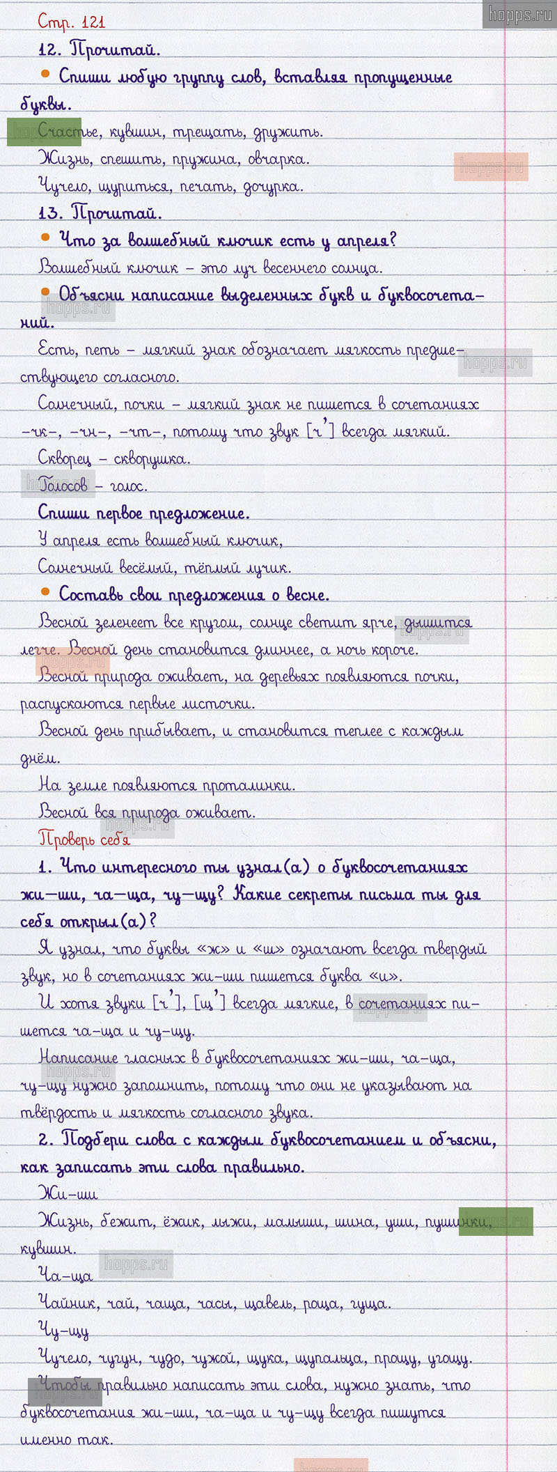 Подробные ответы к вопросам и заданиям, расположенным на 121 странице учебника по русскому языку авторов В.П. Канакина, В.Г. Горецкий для учащихся 1 класса.