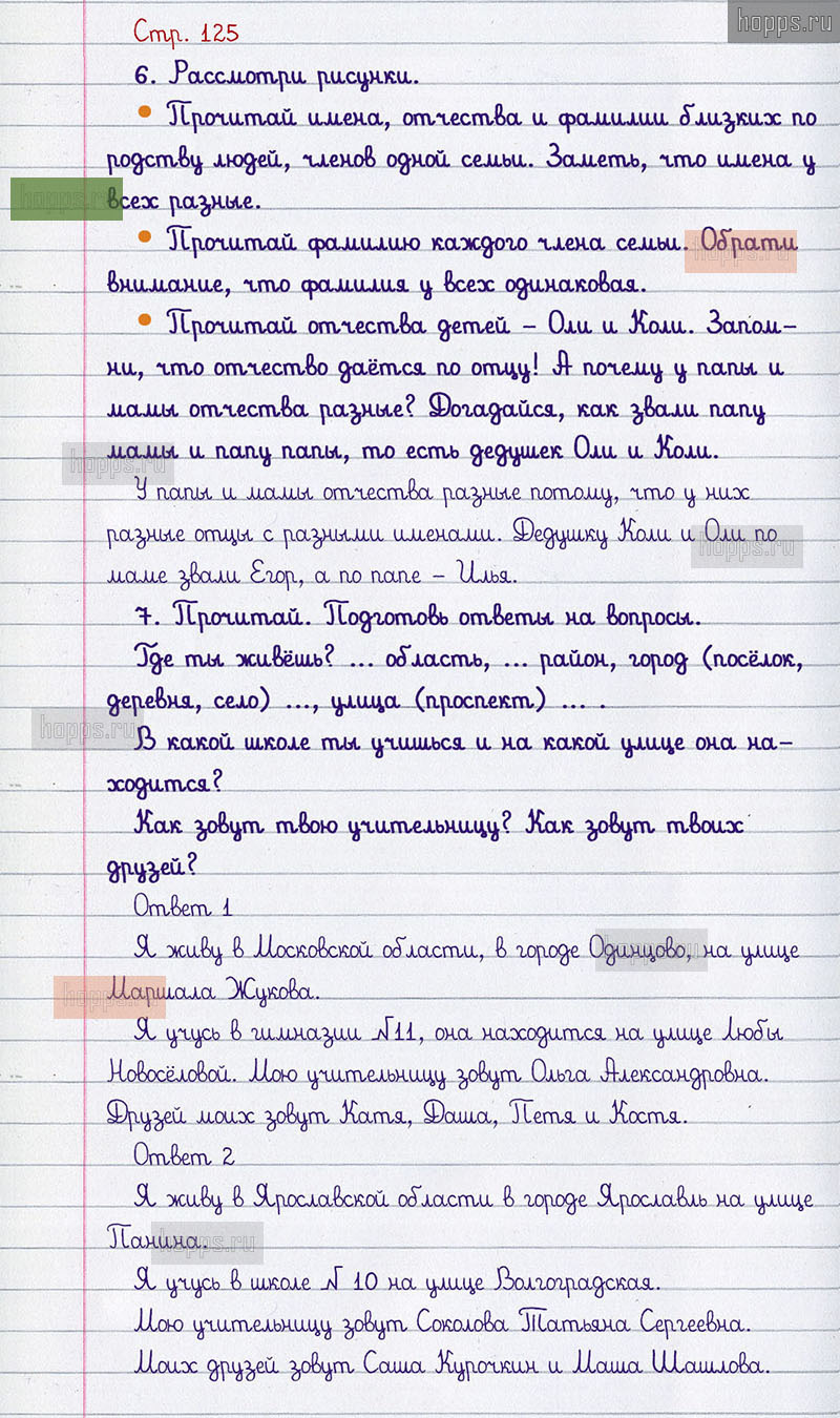 Подробные ответы к вопросам и заданиям, расположенным на 125 странице учебника по русскому языку авторов В.П. Канакина, В.Г. Горецкий для учащихся 1 класса.
