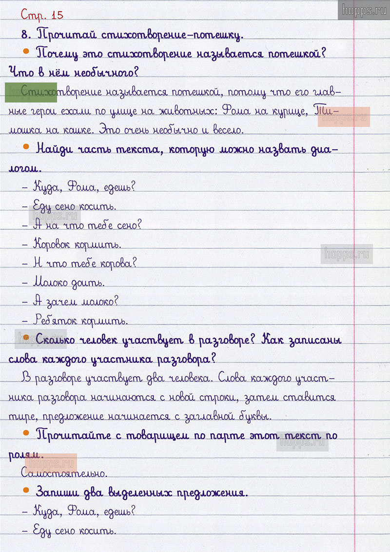 Подробные ответы к вопросам и заданиям, расположенным на 15 странице учебника по русскому языку авторов В.П. Канакина, В.Г. Горецкий для учащихся 1 класса.