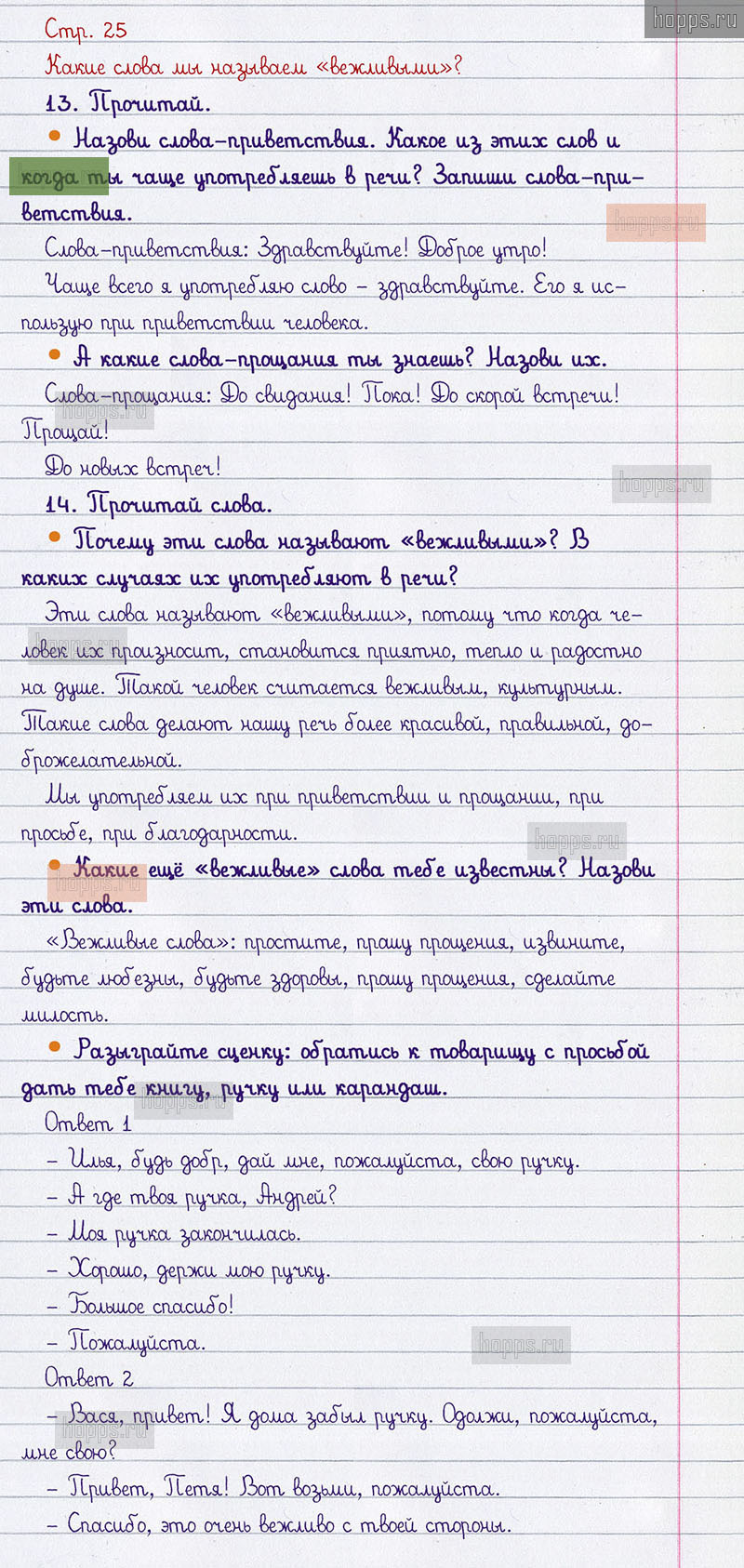 Подробные ответы к вопросам и заданиям, расположенным на 25 странице учебника по русскому языку авторов В.П. Канакина, В.Г. Горецкий для учащихся 1 класса.