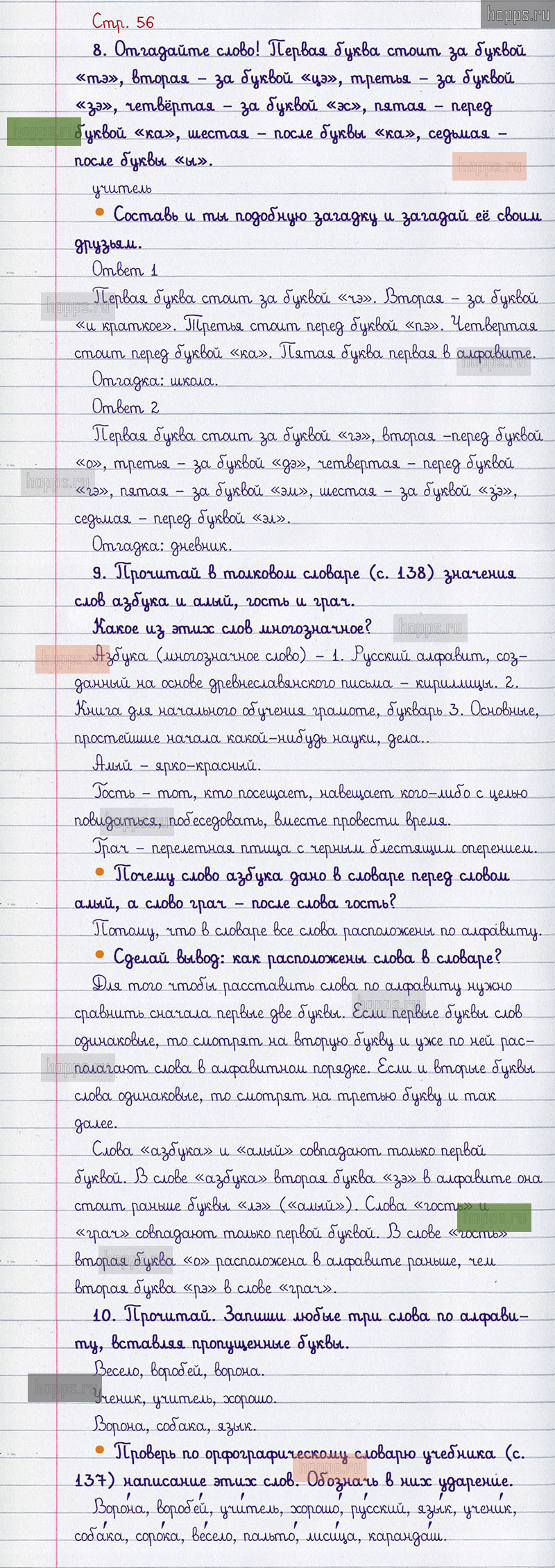 Подробные ответы к вопросам и заданиям, расположенным на 56 странице учебника по русскому языку авторов В.П. Канакина, В.Г. Горецкий для учащихся 1 класса.