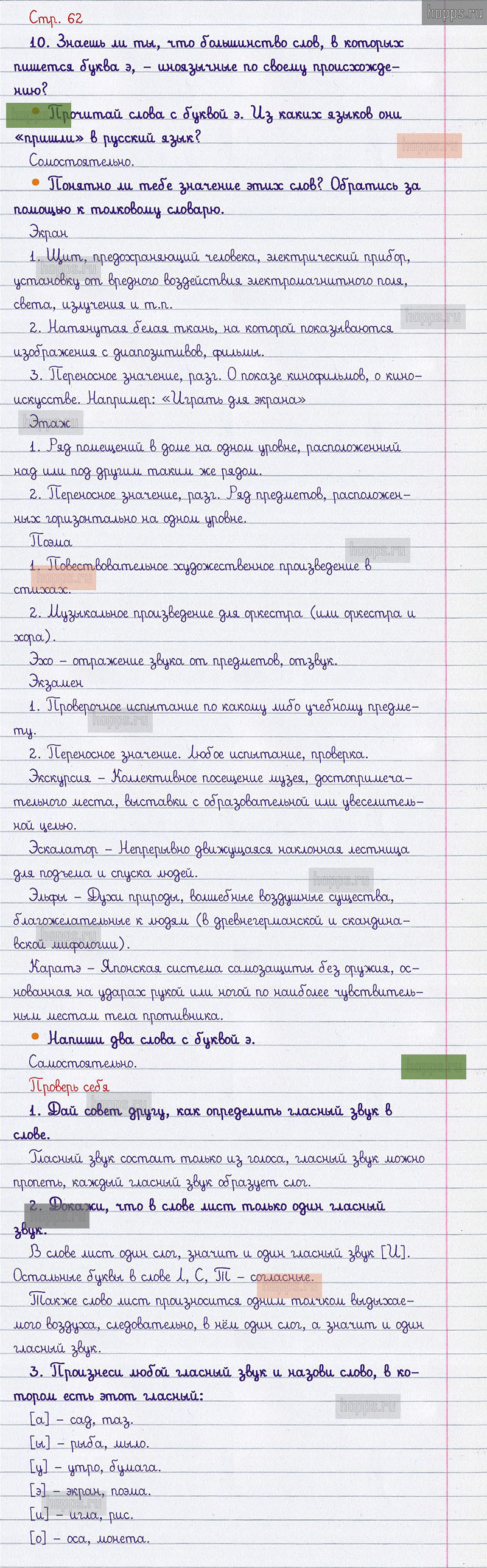 Подробные ответы к вопросам и заданиям, расположенным на 62 странице учебника по русскому языку авторов В.П. Канакина, В.Г. Горецкий для учащихся 1 класса.