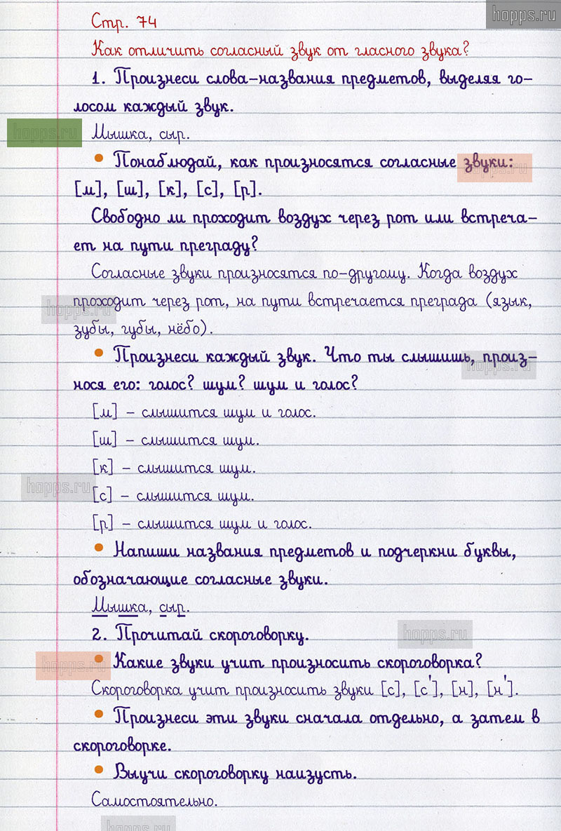Подробные ответы к вопросам и заданиям, расположенным на 74 странице учебника по русскому языку авторов В.П. Канакина, В.Г. Горецкий для учащихся 1 класса.