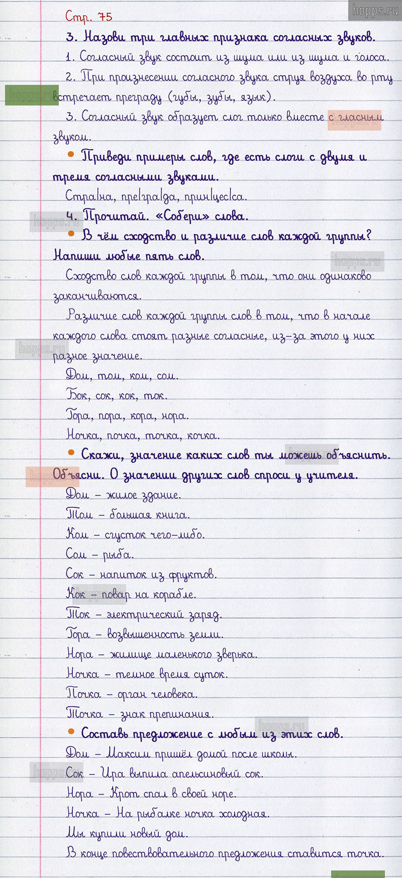 Подробные ответы к вопросам и заданиям, расположенным на 75 странице учебника по русскому языку авторов В.П. Канакина, В.Г. Горецкий для учащихся 1 класса.