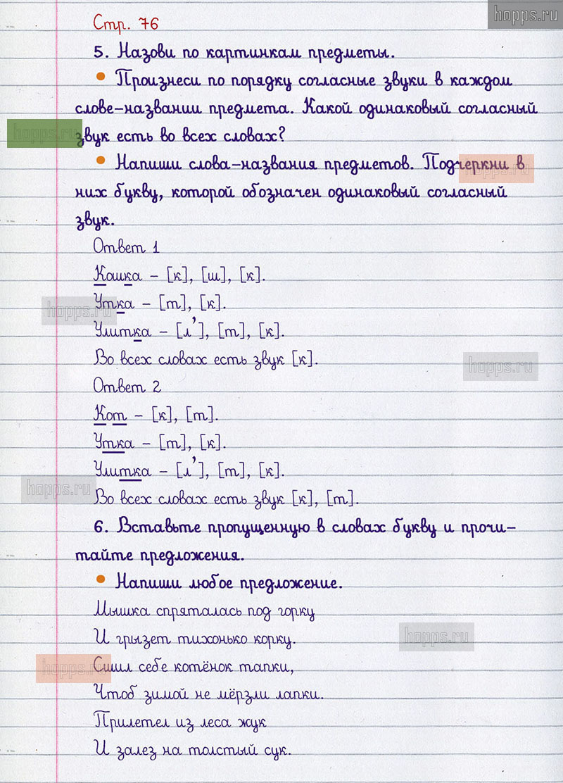 Подробные ответы к вопросам и заданиям, расположенным на 76 странице учебника по русскому языку авторов В.П. Канакина, В.Г. Горецкий для учащихся 1 класса.