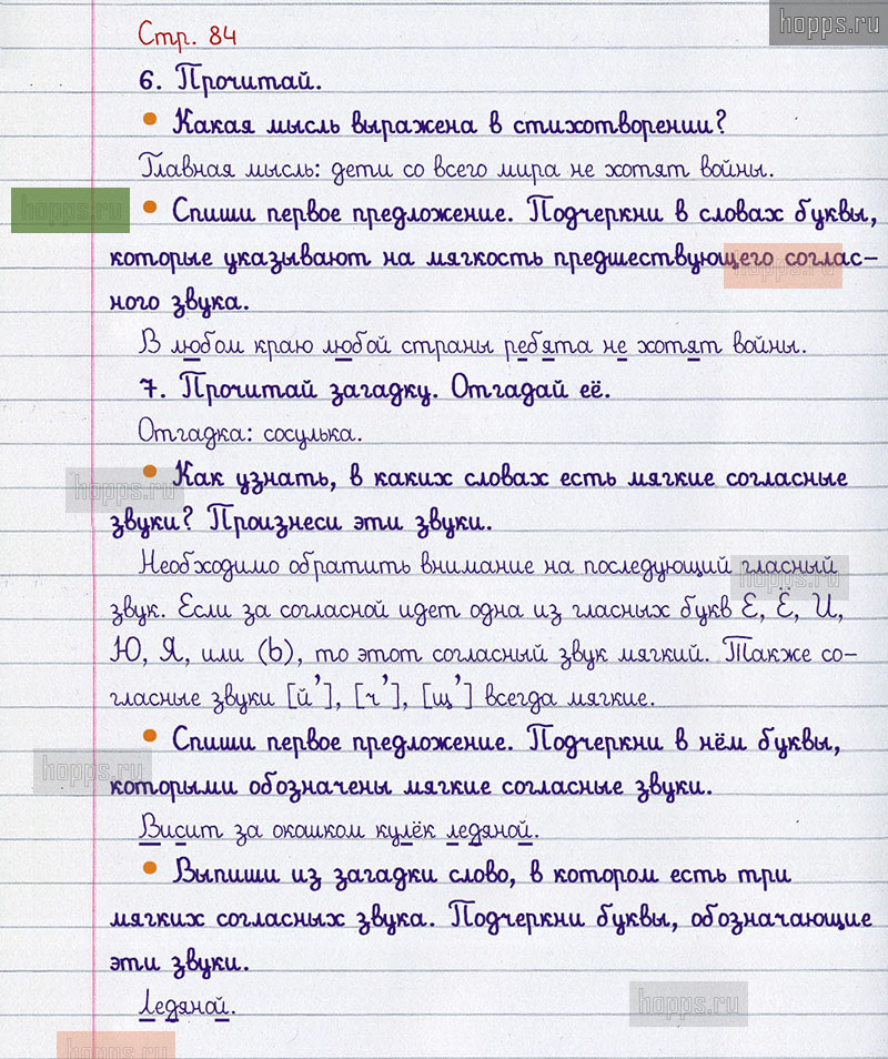 Подробные ответы к вопросам и заданиям, расположенным на 84 странице учебника по русскому языку авторов В.П. Канакина, В.Г. Горецкий для учащихся 1 класса.
