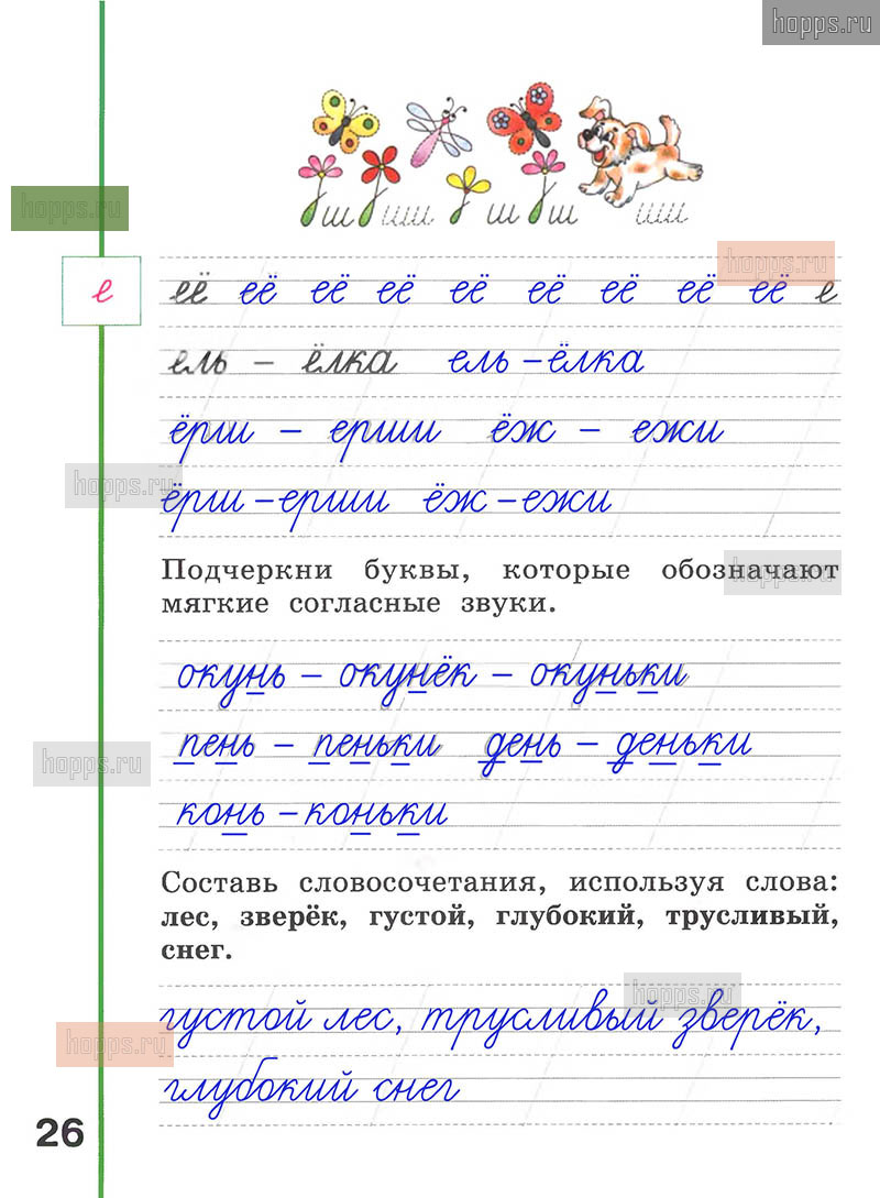 Подробные ответы к заданиям, расположенным на 26 странице рабочей тетради по русскому языку авторов Л.Ф. Климанова, А.В. Абрамов для учащихся 1 класса.