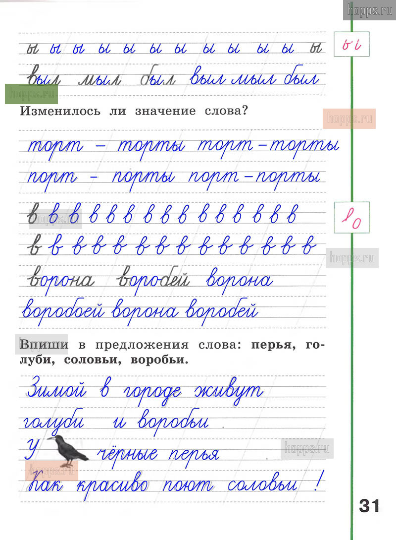 Подробные ответы к заданиям, расположенным на 31 странице рабочей тетради по русскому языку авторов Л.Ф. Климанова, А.В. Абрамов для учащихся 1 класса.