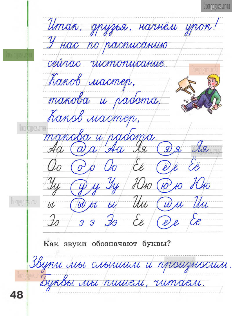 Подробные ответы к заданиям, расположенным на 48 странице рабочей тетради по русскому языку авторов Л.Ф. Климанова, А.В. Абрамов для учащихся 1 класса.