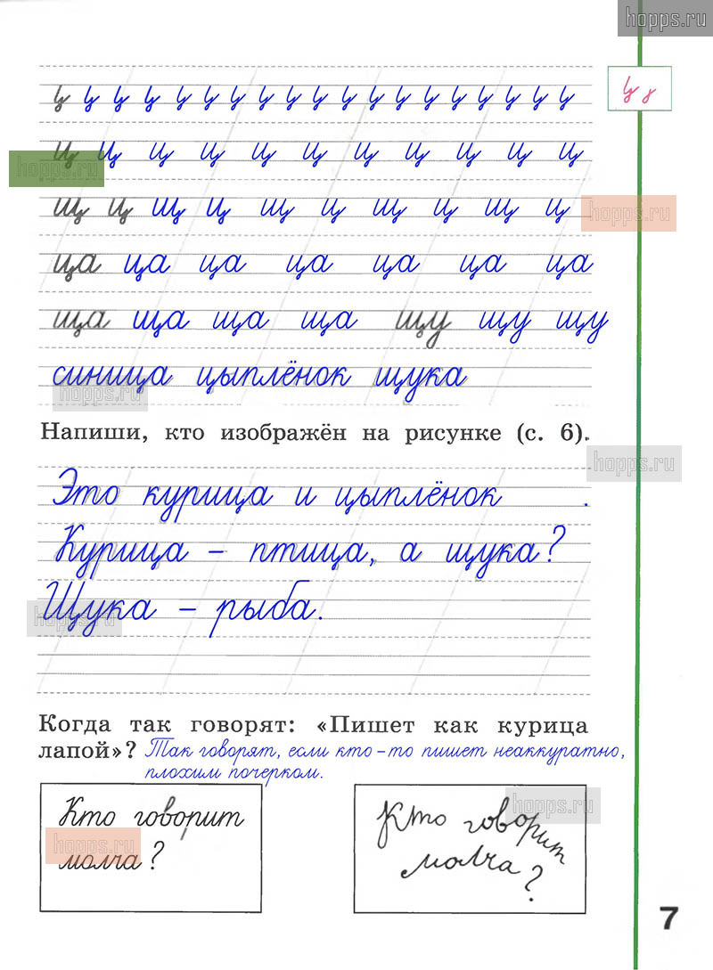 Подробные ответы к заданиям, расположенным на 7 странице рабочей тетради по русскому языку авторов Л.Ф. Климанова, А.В. Абрамов для учащихся 1 класса.