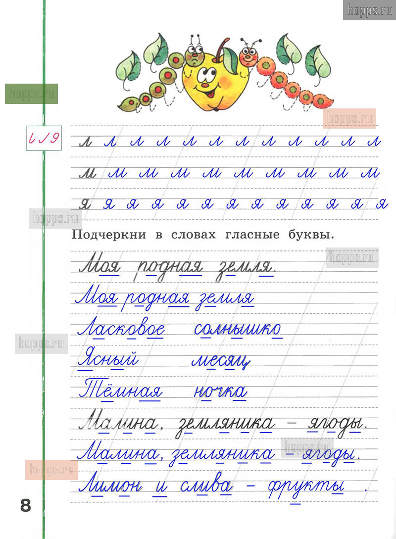 Подробные ответы к заданиям, расположенным на 8 странице рабочей тетради по русскому языку авторов Л.Ф. Климанова, А.В. Абрамов для учащихся 1 класса.