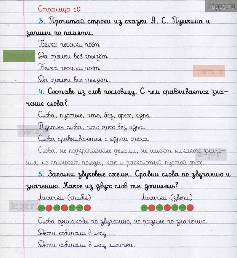 Подробные ответы к вопросам и заданиям, расположенным на 10 странице рабочей тетради по русскому языку авторов Л.Ф. Климанова, Т.В. Бабушкина для учащихся 1 класса.