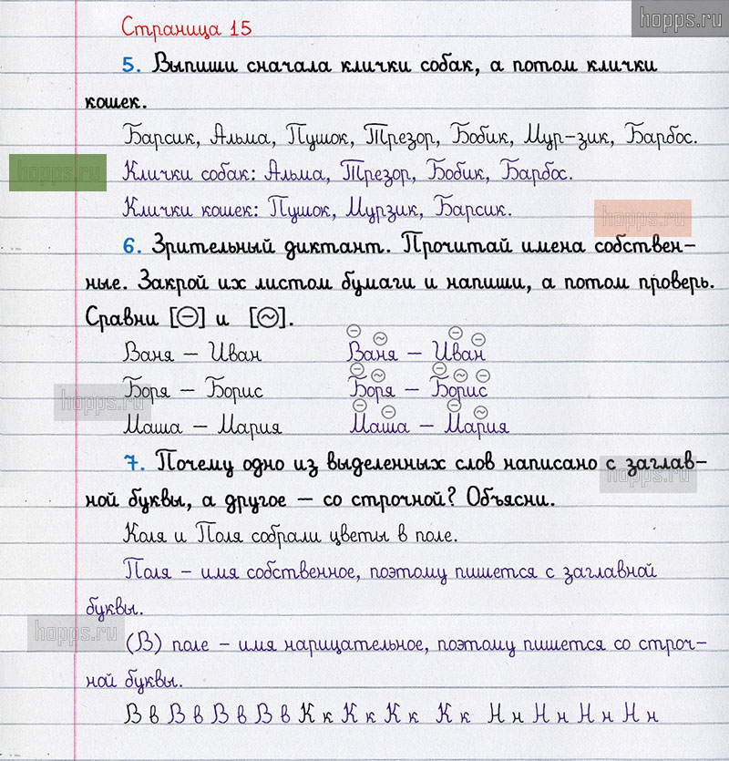 Подробные ответы к вопросам и заданиям, расположенным на 15 странице рабочей тетради по русскому языку авторов Л.Ф. Климанова, Т.В. Бабушкина для учащихся 1 класса.