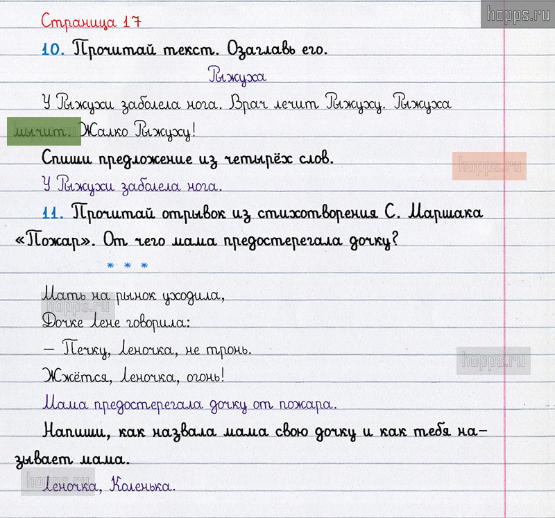 Подробные ответы к вопросам и заданиям, расположенным на 17 странице рабочей тетради по русскому языку авторов Л.Ф. Климанова, Т.В. Бабушкина для учащихся 1 класса.
