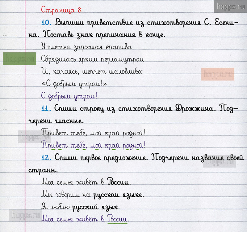Подробные ответы к вопросам и заданиям, расположенным на 8 странице рабочей тетради по русскому языку авторов Л.Ф. Климанова, Т.В. Бабушкина для учащихся 1 класса.