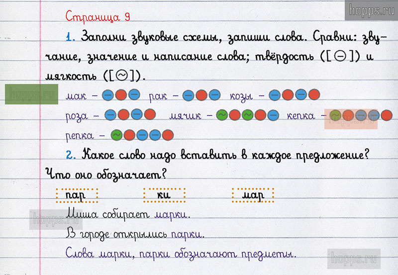 Подробные ответы к вопросам и заданиям, расположенным на 9 странице рабочей тетради по русскому языку авторов Л.Ф. Климанова, Т.В. Бабушкина для учащихся 1 класса.