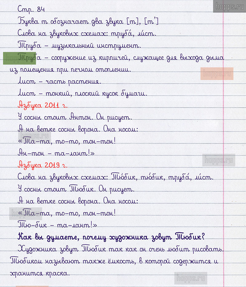 Подробные ответы к вопросам и заданиям, расположенным на 84 странице 1 части азбуки авторов Л.Ф. Климанова, С.Г. Макеева для учащихся 1 класса.