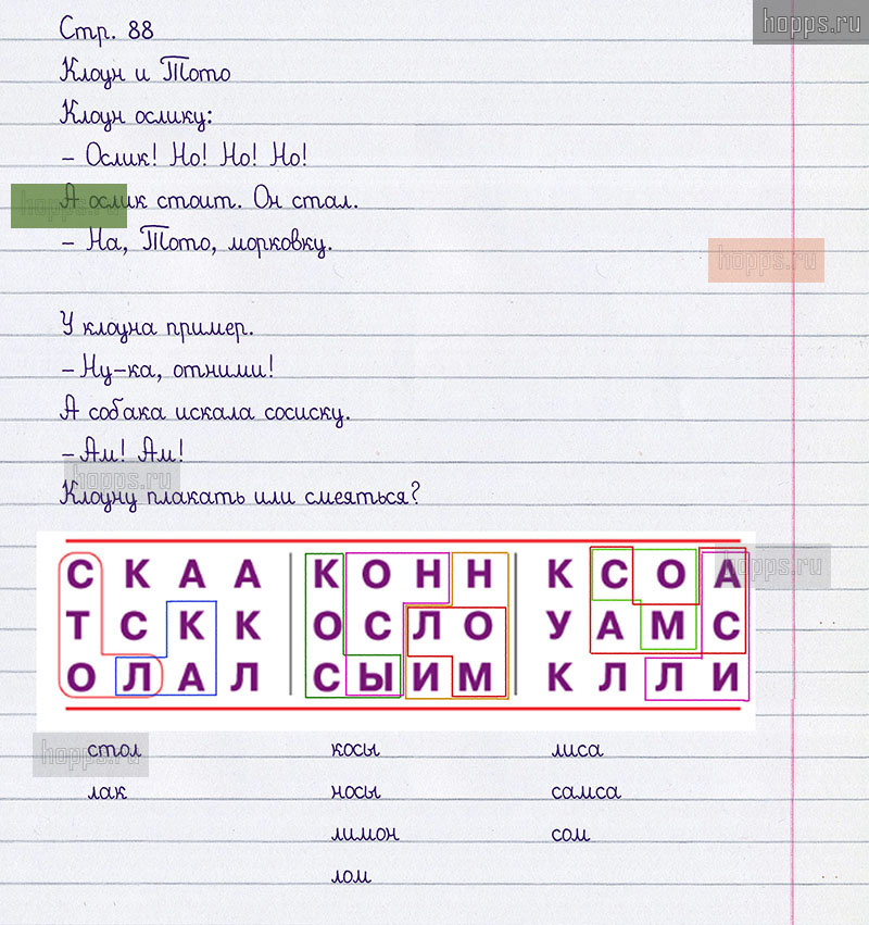 Подробные ответы к вопросам и заданиям, расположенным на 88 странице 1 части азбуки авторов Л.Ф. Климанова, С.Г. Макеева для учащихся 1 класса.