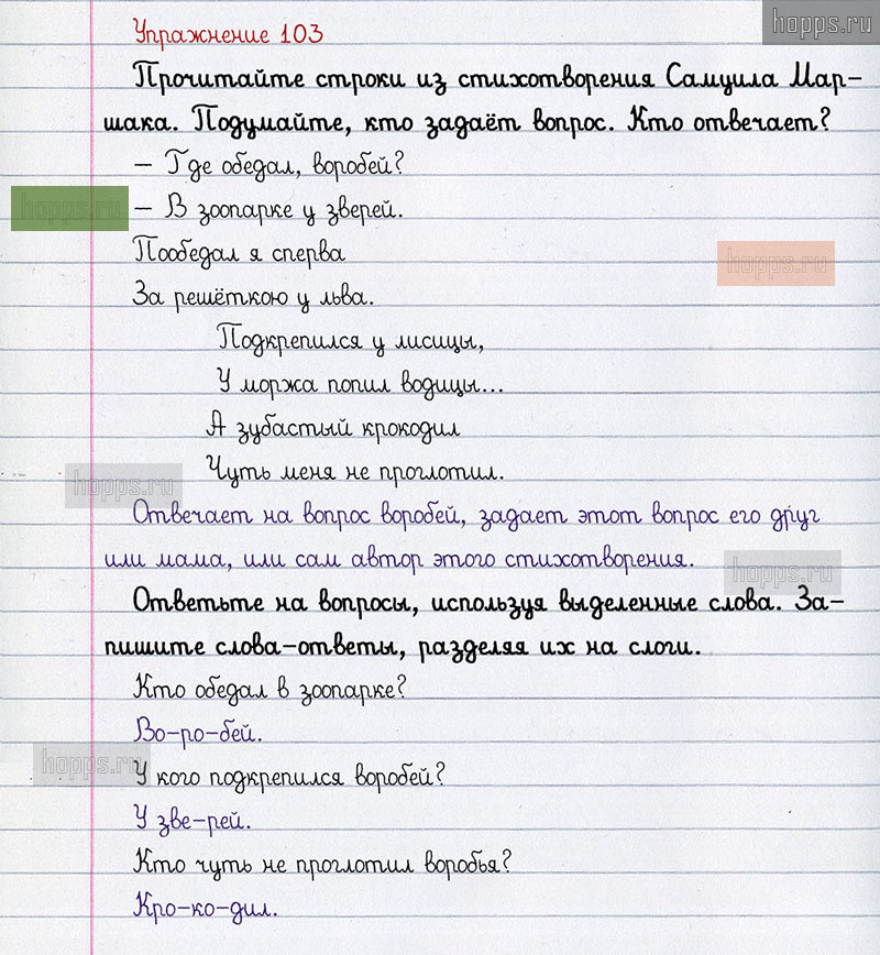 Подробные ответы к 103 упражнению учебника по русскому языку авторов Л.Ф. Климанова, С.Г. Макеева для учащихся 1 класса. Слоги.