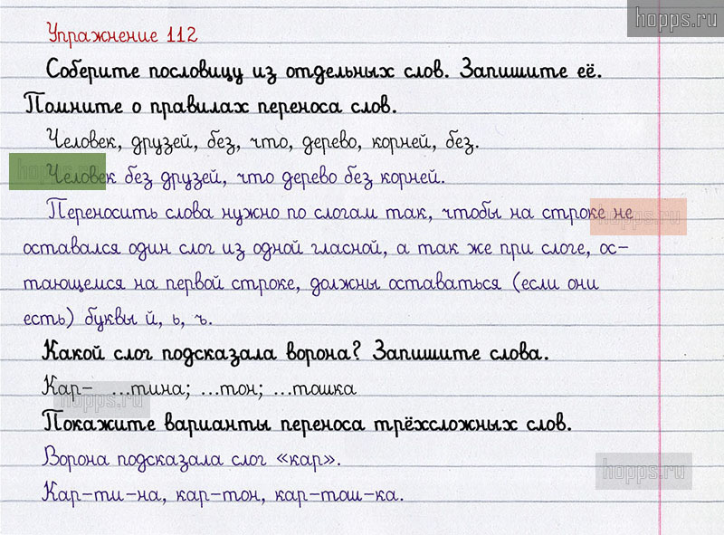 Подробные ответы к 112 упражнению учебника по русскому языку авторов Л.Ф. Климанова, С.Г. Макеева для учащихся 1 класса. Перенос слов.