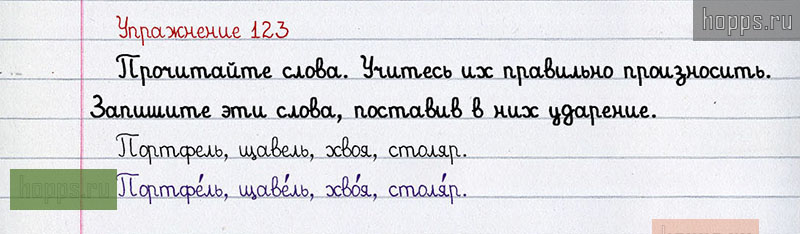 Подробные ответы к 123 упражнению учебника по русскому языку авторов Л.Ф. Климанова, С.Г. Макеева для учащихся 1 класса. Ударение.