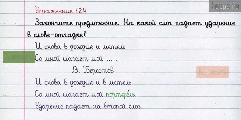 Подробные ответы к 124 упражнению учебника по русскому языку авторов Л.Ф. Климанова, С.Г. Макеева для учащихся 1 класса. Ударение.