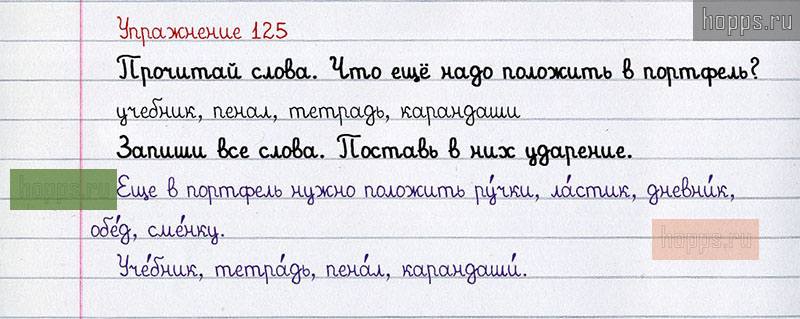 Подробные ответы к 125 упражнению учебника по русскому языку авторов Л.Ф. Климанова, С.Г. Макеева для учащихся 1 класса. Ударение.