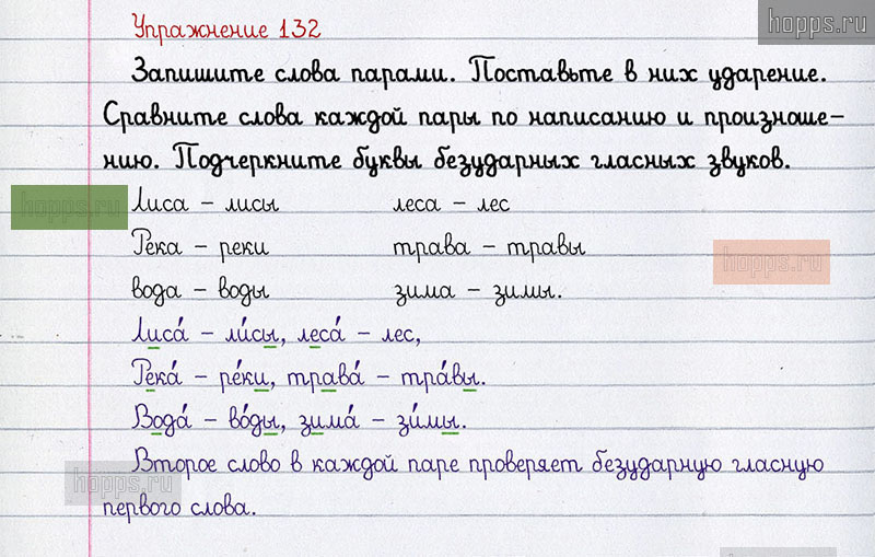 Подробные ответы к 132 упражнению учебника по русскому языку авторов Л.Ф. Климанова, С.Г. Макеева для учащихся 1 класса. Ударные и безударные гласные звуки. Обозначение их буквами.