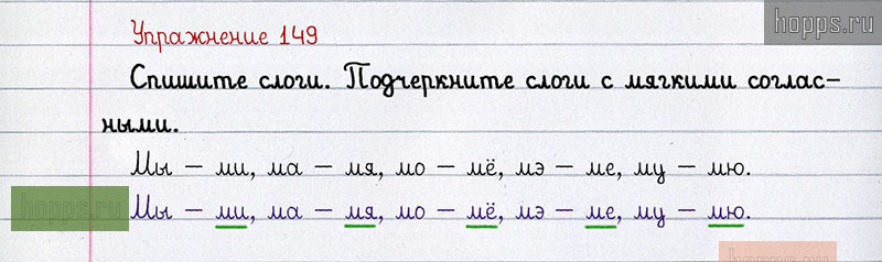 Подробные ответы к 149 упражнению учебника по русскому языку авторов Л.Ф. Климанова, С.Г. Макеева для учащихся 1 класса. Твёрдые и мягкие согласные звуки. Обозначение мягкости согласных звуков на письме.