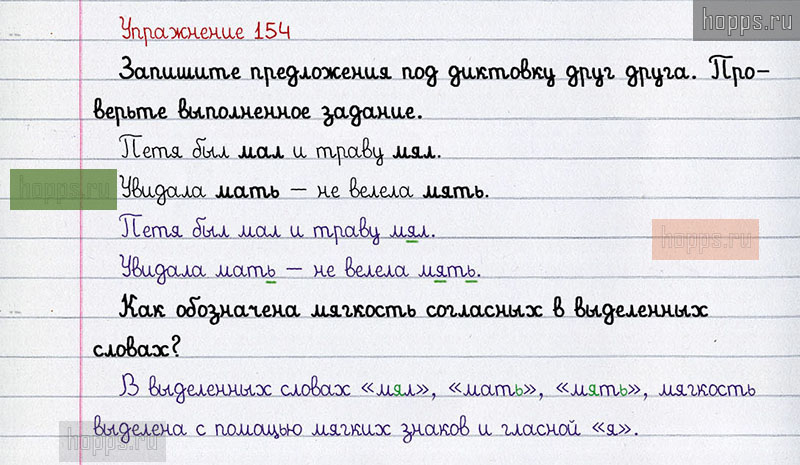 Подробные ответы к 154 упражнению учебника по русскому языку авторов Л.Ф. Климанова, С.Г. Макеева для учащихся 1 класса. Твёрдые и мягкие согласные звуки. Обозначение мягкости согласных звуков на письме.