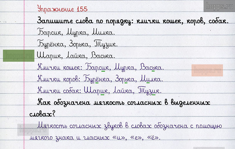 Подробные ответы к 155 упражнению учебника по русскому языку авторов Л.Ф. Климанова, С.Г. Макеева для учащихся 1 класса. Твёрдые и мягкие согласные звуки. Обозначение мягкости согласных звуков на письме.