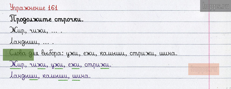 Подробные ответы к 161 упражнению учебника по русскому языку авторов Л.Ф. Климанова, С.Г. Макеева для учащихся 1 класса. Правописание буквосочетаний ЖИ — ШИ, ЧА — ЩА, ЧУ —ЩУ.
