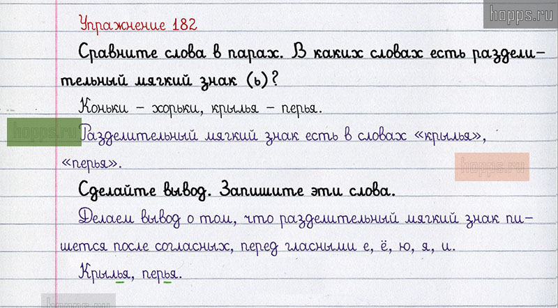 Подробные ответы к 182 упражнению учебника по русскому языку авторов Л.Ф. Климанова, С.Г. Макеева для учащихся 1 класса. Разделительный мягкий знак (ь).