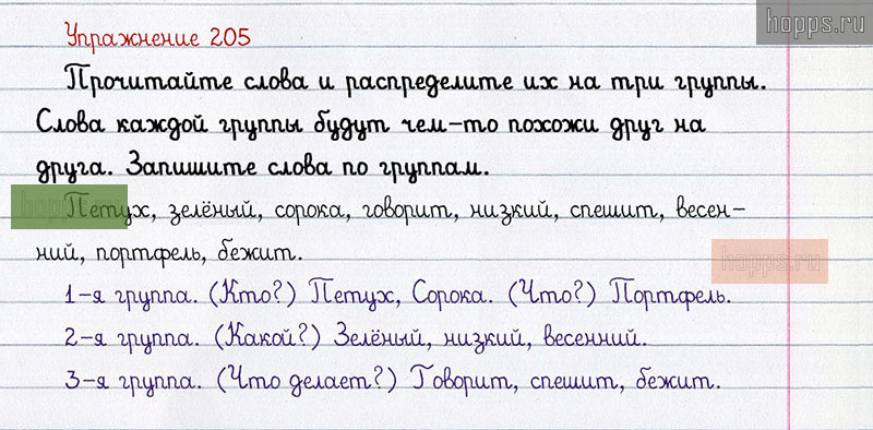 Подробные ответы к 205 упражнению учебника по русскому языку авторов Л.Ф. Климанова, С.Г. Макеева для учащихся 1 класса. Группы слов.